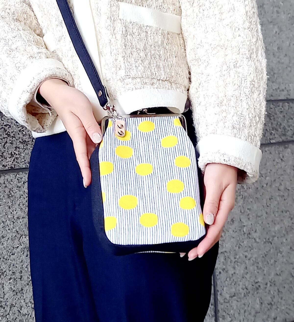 ”パチン”と閉まるガマ口仕様で可愛く見えます。